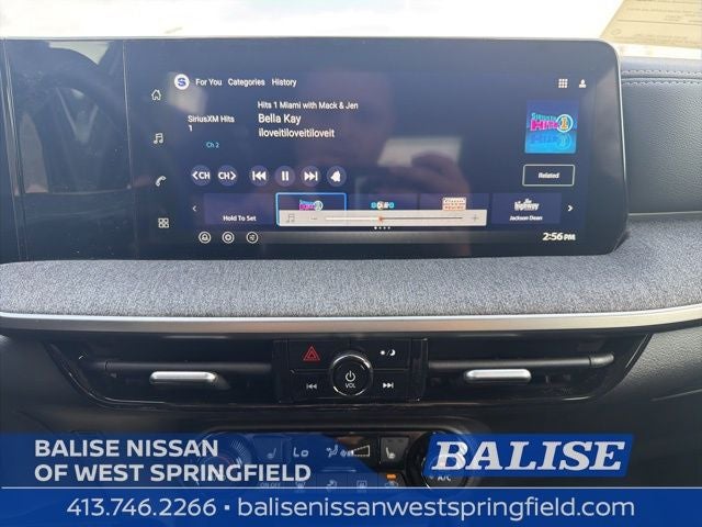 - Radio: AM/FM/SiriusXM Audio System -inc: 12.3" color touchscreen display w/4 speakers, Bluetooth® hands-free phone system, streaming audio via Bluetooth®, NissanConnect featuring wireless Apple CarPlay, wireless Android Auto, Siri eyes free and hands-free text messaging assistant, audio and Bluetooth® steering wheel switches