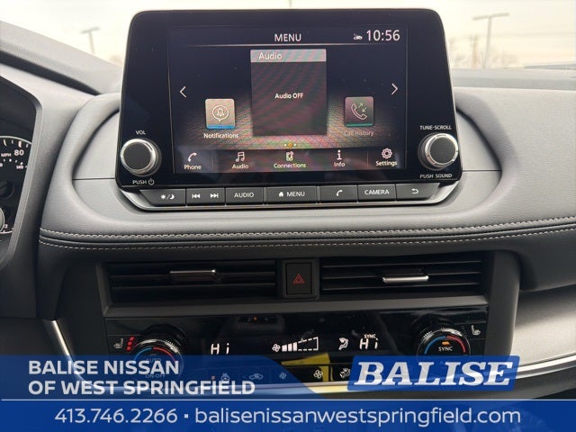 - Radio: AM/FM NissanConnect -inc: 6 speakers plus 2 tweeters, Apple CarPlay, Android Auto, 8" color touch screen display, Bluetooth®, 2 front USB type-C, Wi-Fi hotspot and NissanConnect Services powered by SiriusXM