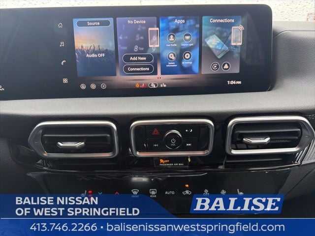 - Radio: AM/FM w/RDS/MP3 -inc: 4 speakers, 12.3" NissanConnect multimedia center display, Bluetooth® hands-free phone system, streaming audio via Bluetooth®, hands-free text messaging assistant, Siri Eyes Free, Google Assistant voice recognition, wireless Apple CarPlay and Android Auto and (2) front USB connection port (type C)